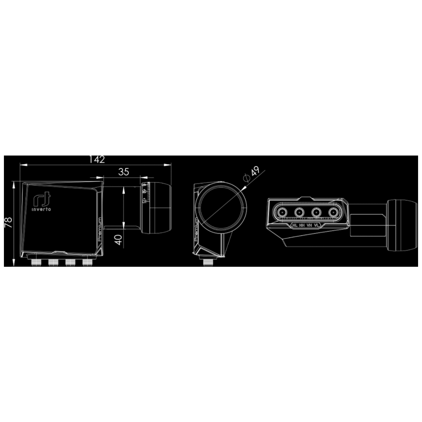 Inverto LNB Quad, šum 0,2dB, Premium, DVB-S2 ( HD - UHD ) - IDLP-QDL413-PREMU-OPN