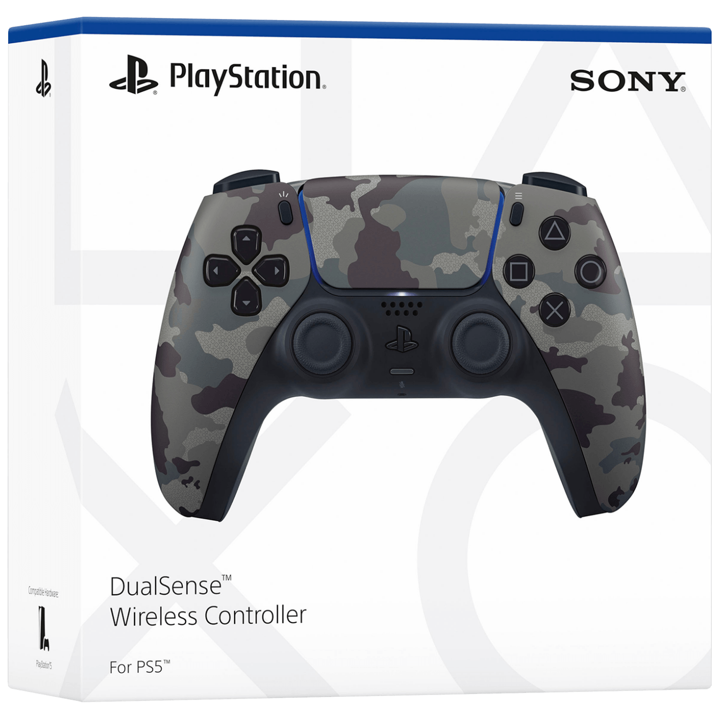 Osvježen prepoznatljivim mikro uzorcima legendarnih PlayStation oblika, ovaj elegantni bežični upravljač DualSense™ Gray Camouflage u igru donosi dašak urbane estetike.