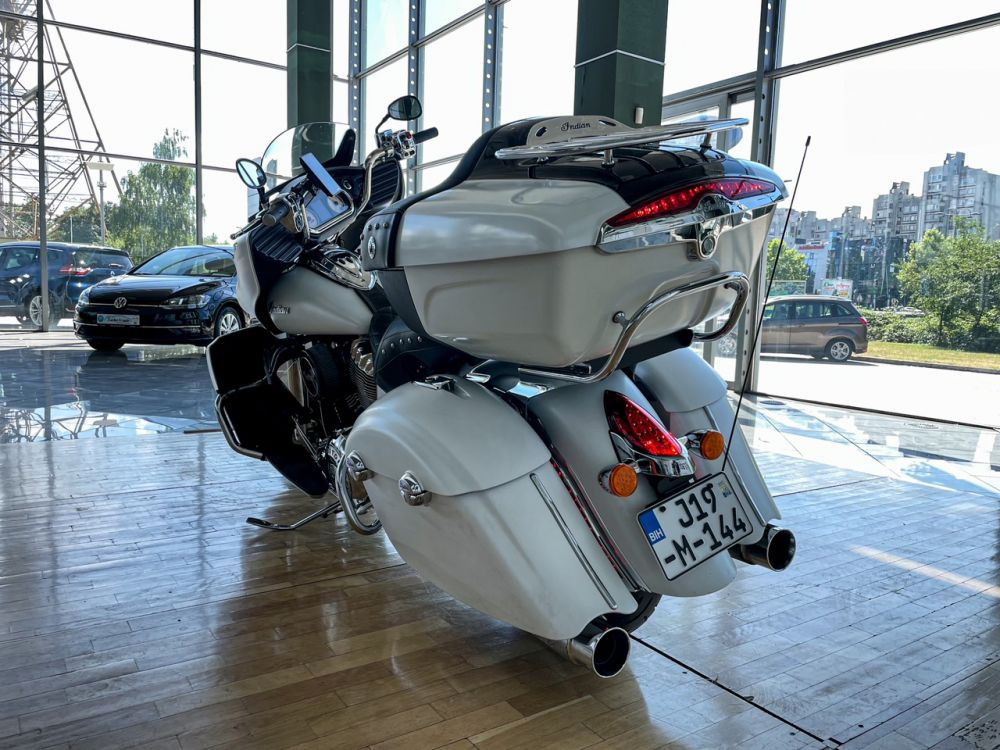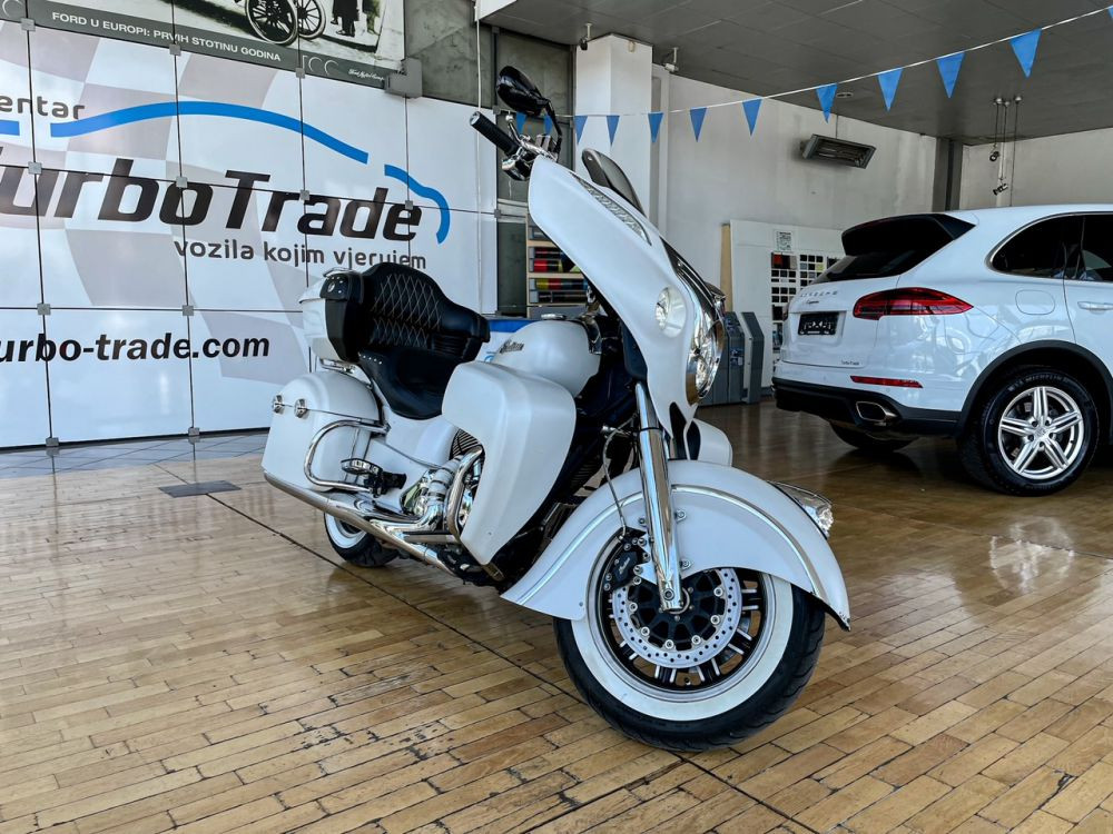 MOTOR JE REGISTROVAN PUNU GODINU (16.06.2023), NOVE GUME,ODRADJEN SERVIS,2 KLJUČA, TRENUTNO BEZ ULAGANJA IKAKVIH(PRIPREMLJEN ZA SEZONU) Ambijentalno unutarašnje osvjetljenje Motor CC 1811,0 cc Maksimalna snaga 100,00 KS Maksimalni obrtni moment 138,90 Nm Gorivo Benzin Mjenjač 6 brzina Duljina/Širina/Visina 2656/ 1000/1491 mm Masa praznog vozila 421 kg Roadmaster je kruzer dolazi s modernim pogodnostima poput mjerača tlaka u gumama, LED svjetala, elektronički podesivog vizira i podesivih podnih ploča. Luksuzan je na dva kotača jer postoji 10 individualnih postavki za vozača, kao i jastuk za grijana kožna sjedala. Roadmaster pokreće isti 111 1811cc 'Thunder-Stroke' V-twin motor koji se također koristi u Chief Classicu, Chief Vintage i Chieftainu i dostupan je u thunder slonovače krem boje.