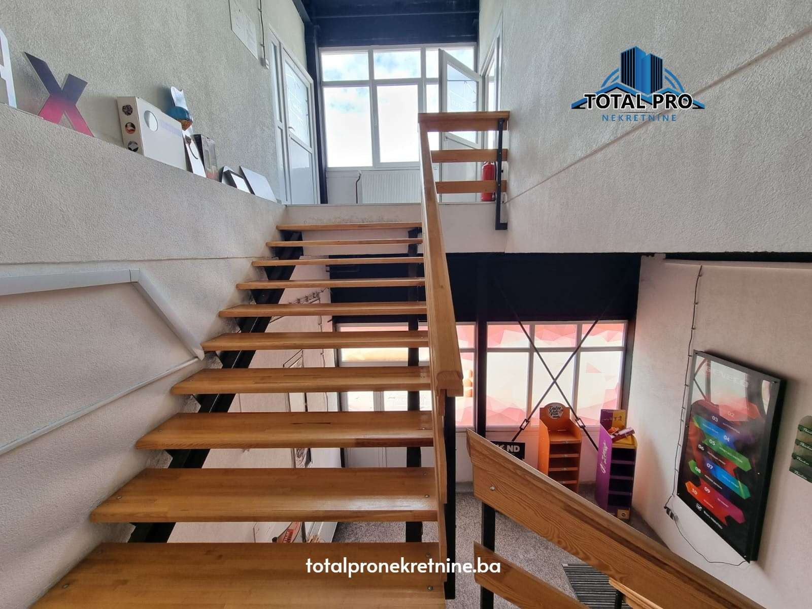 - Sprat (320 m²) obuhvata kancelarijski prostor s hodnikom, tri kancelarije, salu za sastanke, garderober, toalet i terasu.