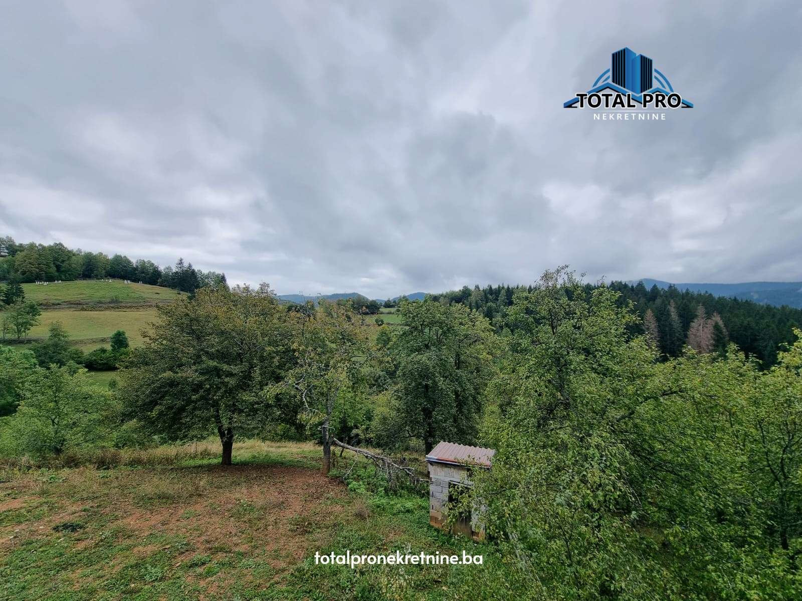 Prodaje se zemljište površine 12.145 m2 sa dva ucrtana stambena objekta površina u osnovi 66 m2 i 68 m2 od kojih je jedan kompletno uklonjen, a drugi se nalazi na placu i sastoji se od tri etaže Pr+1S+Ptk, u mjestu Medojevići, općina Ilijaš, Sarajevo.