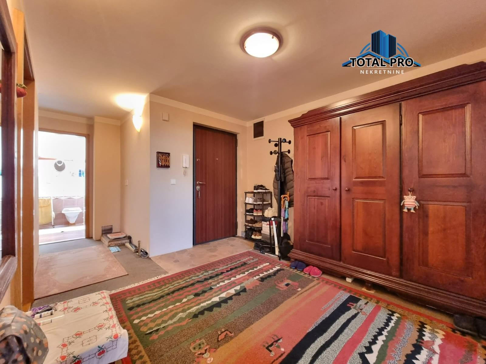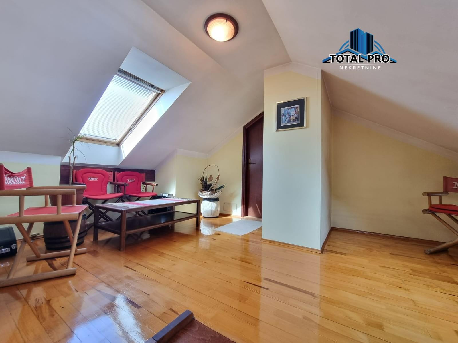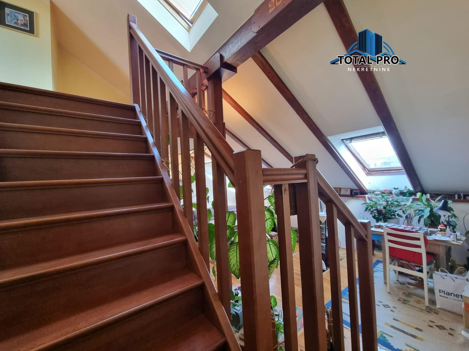 Ulazna vrata su blinda, unutrašnja i vanjska stolarija je drvena, krovni prozori Velux, podne obloge parket, laminat i keramika. Stan posjeduje klima uređaj, podrumsku prostoriju.
