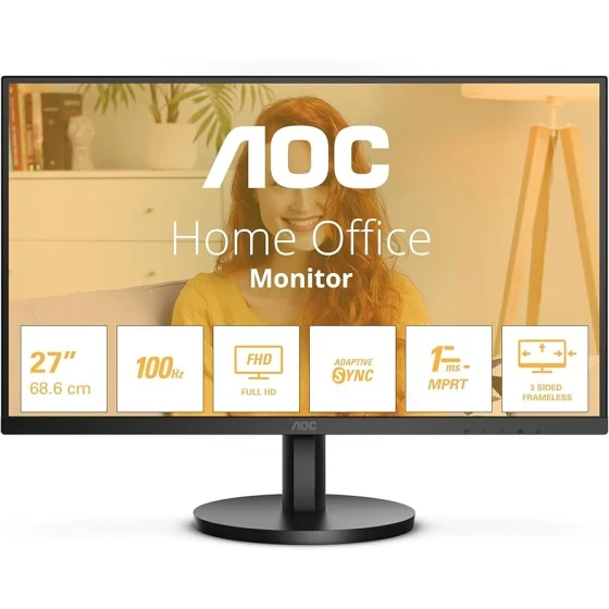 AOC Monitor 27B3HA2 27” IPS, 16:9, 1920x1080, 100Hz, 1ms, 250 cd/m2, 1300:1, VGA, HDMI, VESA, Ultra Narrow, Adaptive Sync, 2 W x 2, Black, VESA 3y