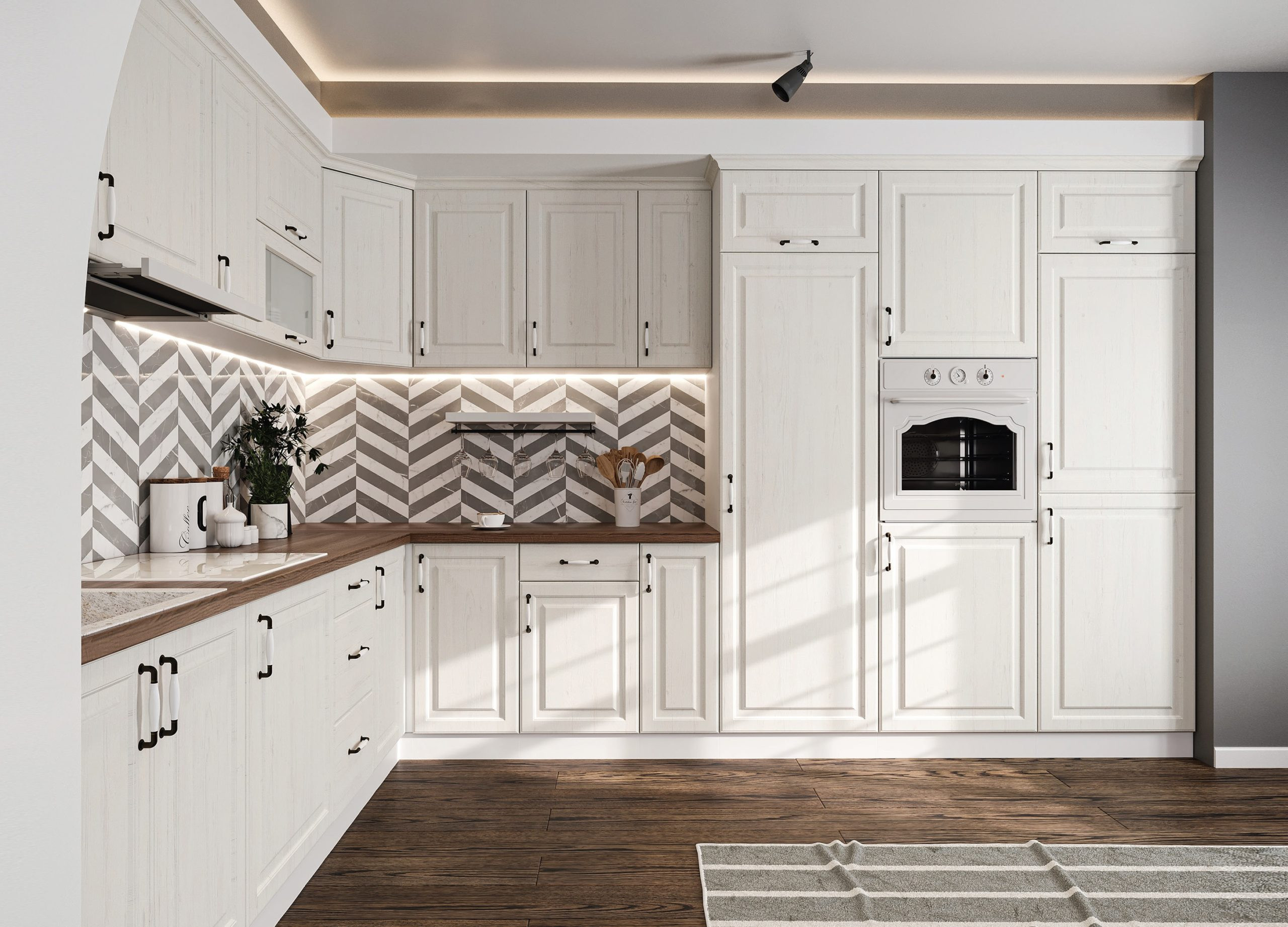Spoj tradionalnog i modernog izgleda idealan je za sve vrste domova. Frontovi su izrađeni od medijapana 19mm i tretirani savremenom italijanskom vakum tehnologijom. U završnoj obradi na vakuum presi je precizno zaljepljena PVC folija, koja je otpornija na habanje i udarce. U uporebi su kvalitetni okovi i baglame sa ublaživačem proizvođača BLUM.
