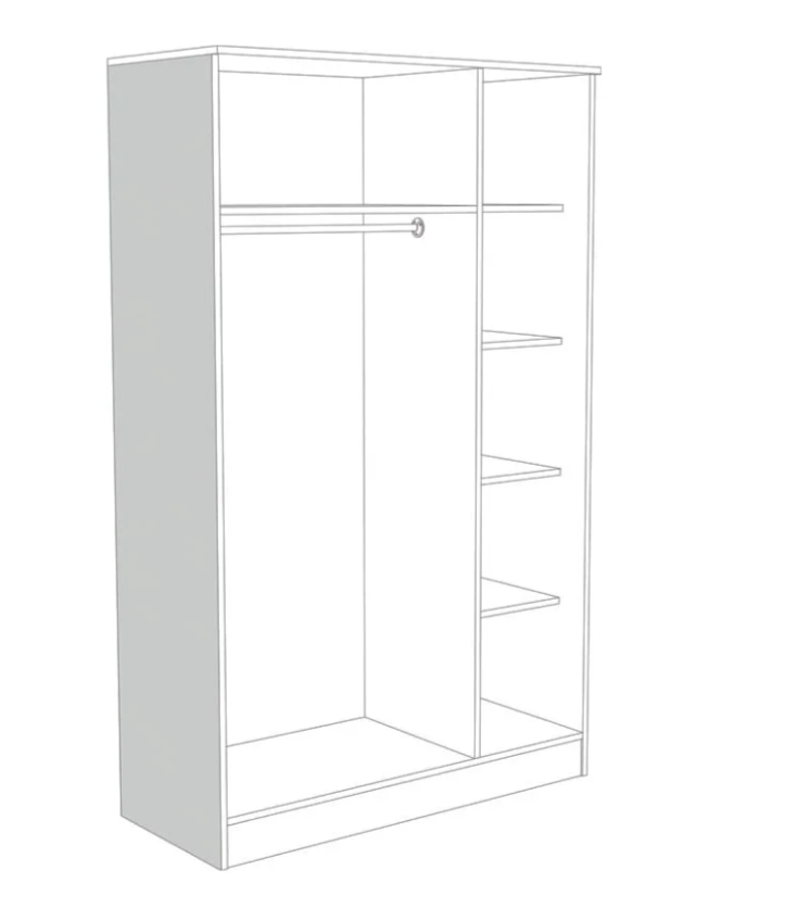 Ormar IVA 3K 16mm garderober koji je praktičan za manje prostorije, izrađen od univera 16mm. Maksimalno iskorišćen unutrašnji prostor garderobera koji je podeljen na dva dela, od kojih su na jednoj strani police, a na drugoj je garderoberna šipka.