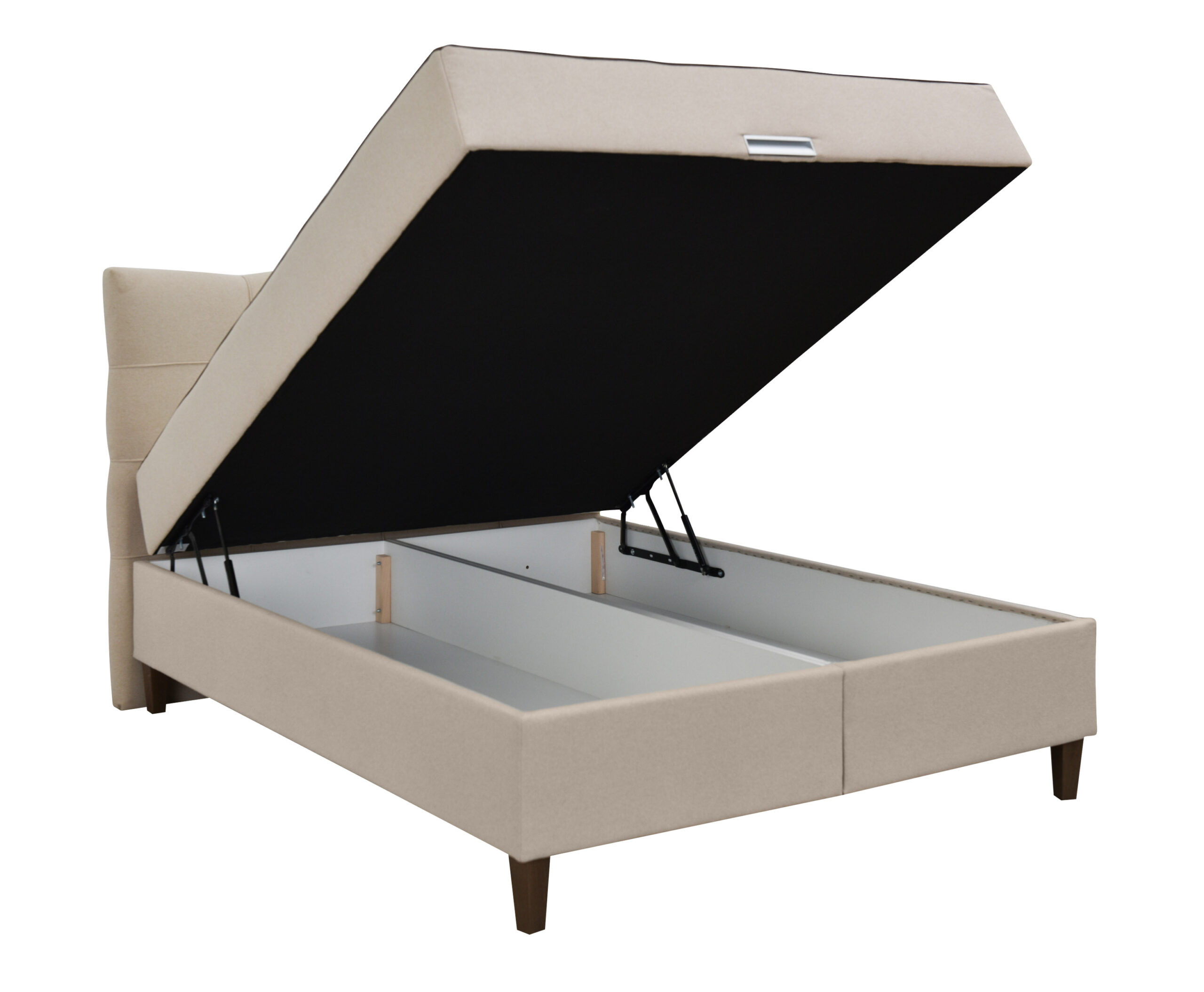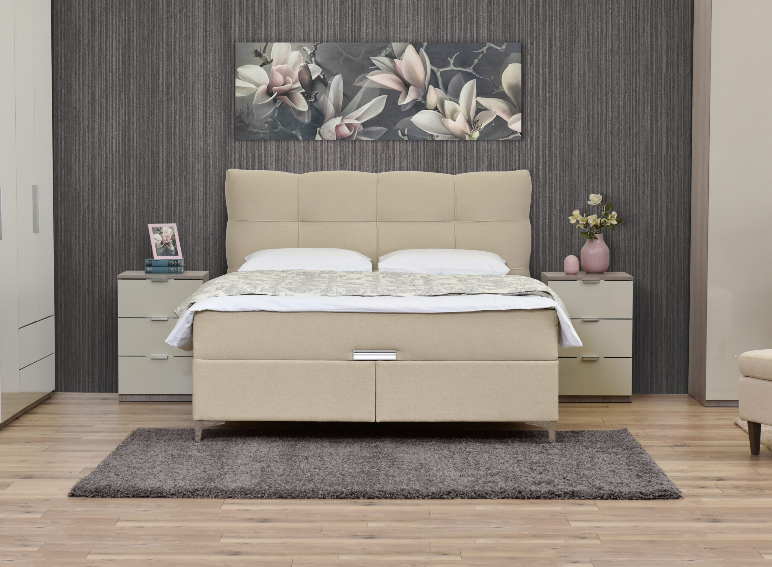 Francuski ležaj Korleone New je savršen spoj luksuznog i savremenog dizajna. Elegantnan dizajn ovog kreveta će doprineti da vaša spavaća soba izgleda luksuzno i moderano. Ispuna dušeka napravljena od džepičastog jezgra, što znači da se svaka opruga nalazi u posebnom džepu i tako nezavisno od ostalih reaguje na opterećenje. Ova tehnologija pruža izuzetno ortopedsko dejstvo i dobru ventilaciju. Prostor za odlaganje ispod dušeka omogućava da se posteljina ili druge stvari koje su potrebne za spavanje mogu odložiti na mestu gde su lako dostupni, a da ne zauzimaju dodatni prostor u sobi