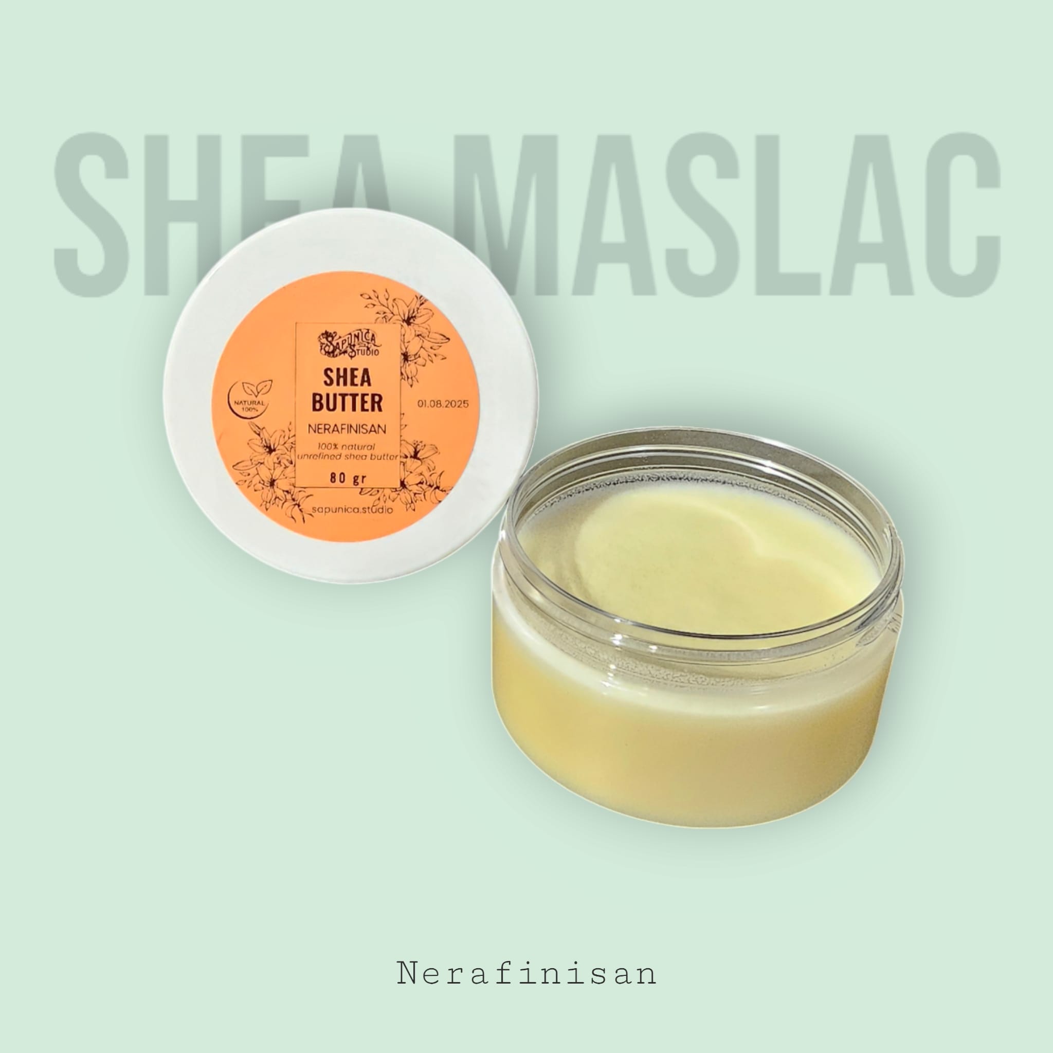 - • Pakiranje: 80 grama čistog nerafinisanog shea maslaca u praktičnom pakiranju koje osigurava očuvanje svježine i kvalitete.