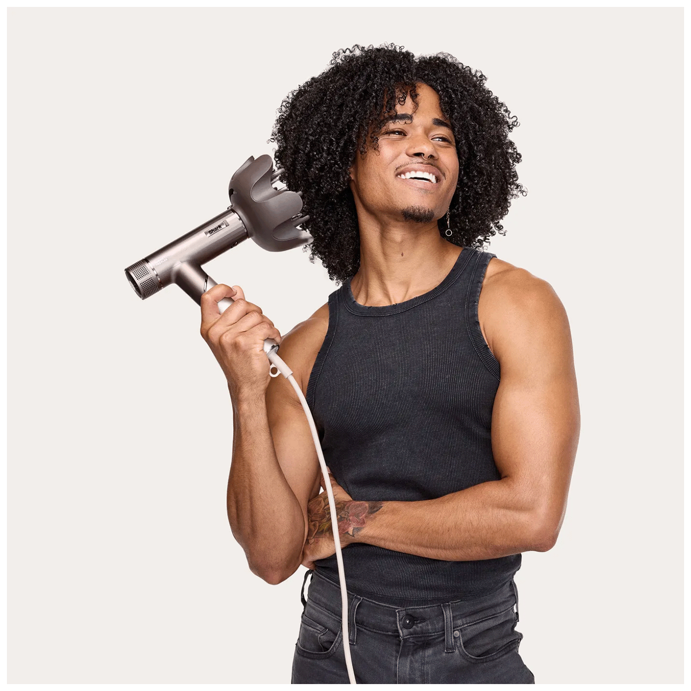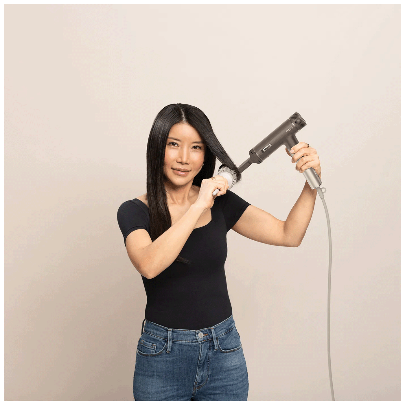 FrizzFighter Anti-Frizz završna mlaznica : Automatski privlači kosu, bori se protiv kovrčanja i zaglađuje neravnine. Koristi Coanda Airflow tehnologiju s dvostrukim protokom zraka za hvatanje i smanjenje raspadanja na suhoj, ravnoj ili opuštenoj kosi.