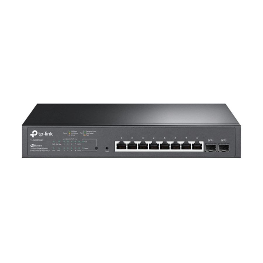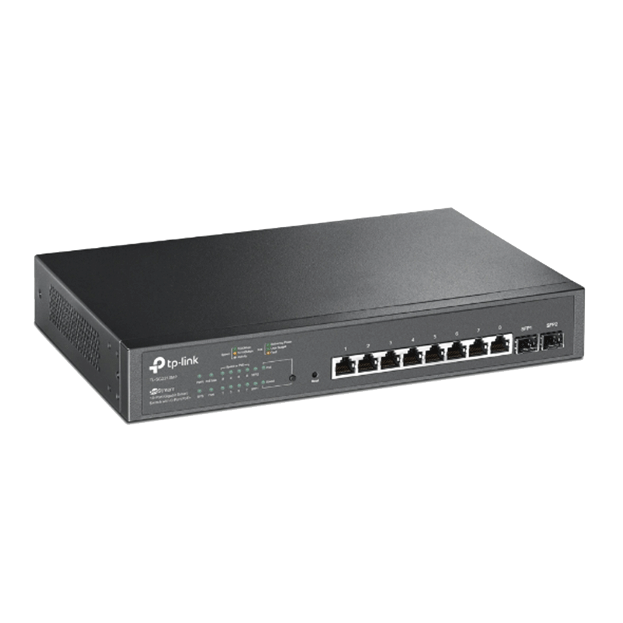 TP-Link TL-SG2210MP JetStream 10-portni gigabitni pametni prekidač sa 8 portova PoE+, 8× gigabitni PoE+ portovi, 2× gigabitna SFP slota, 802.3at/af, 1