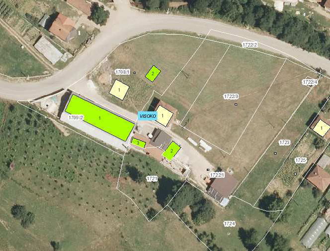 zgrade, dvije štale, krov. Klaonica sa opremom za klanje sitne i krupne