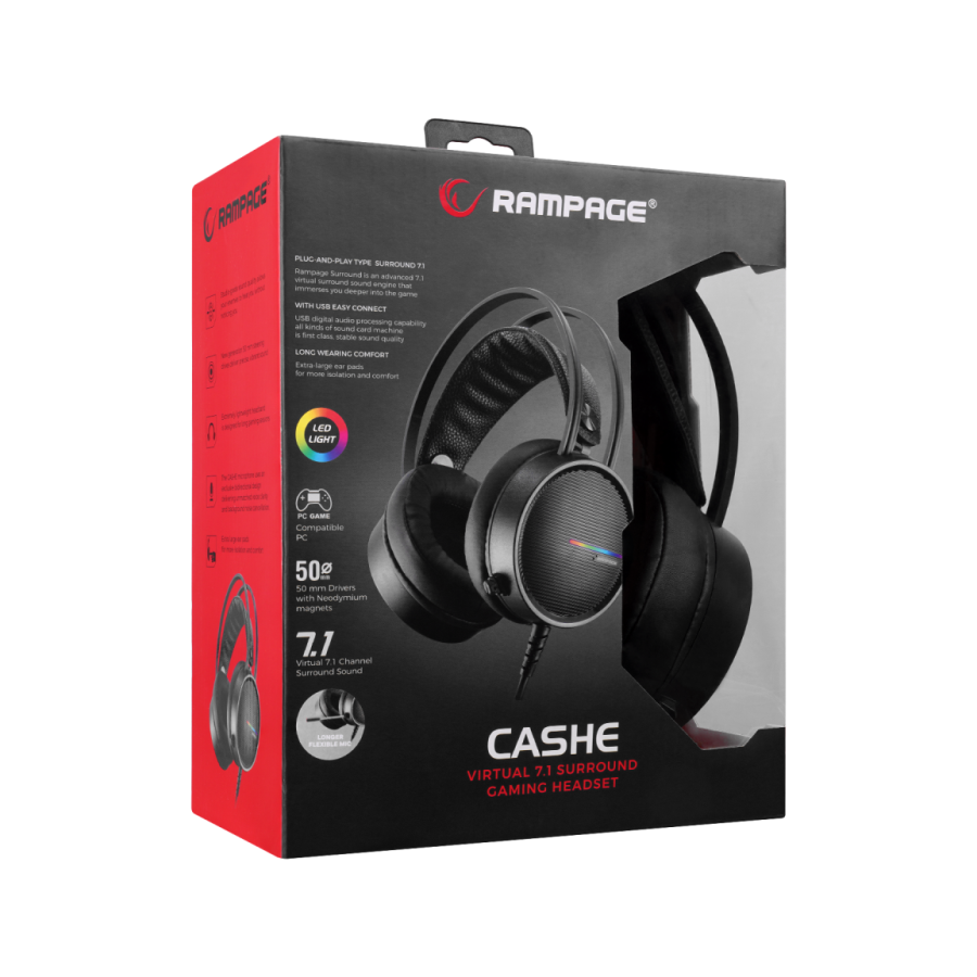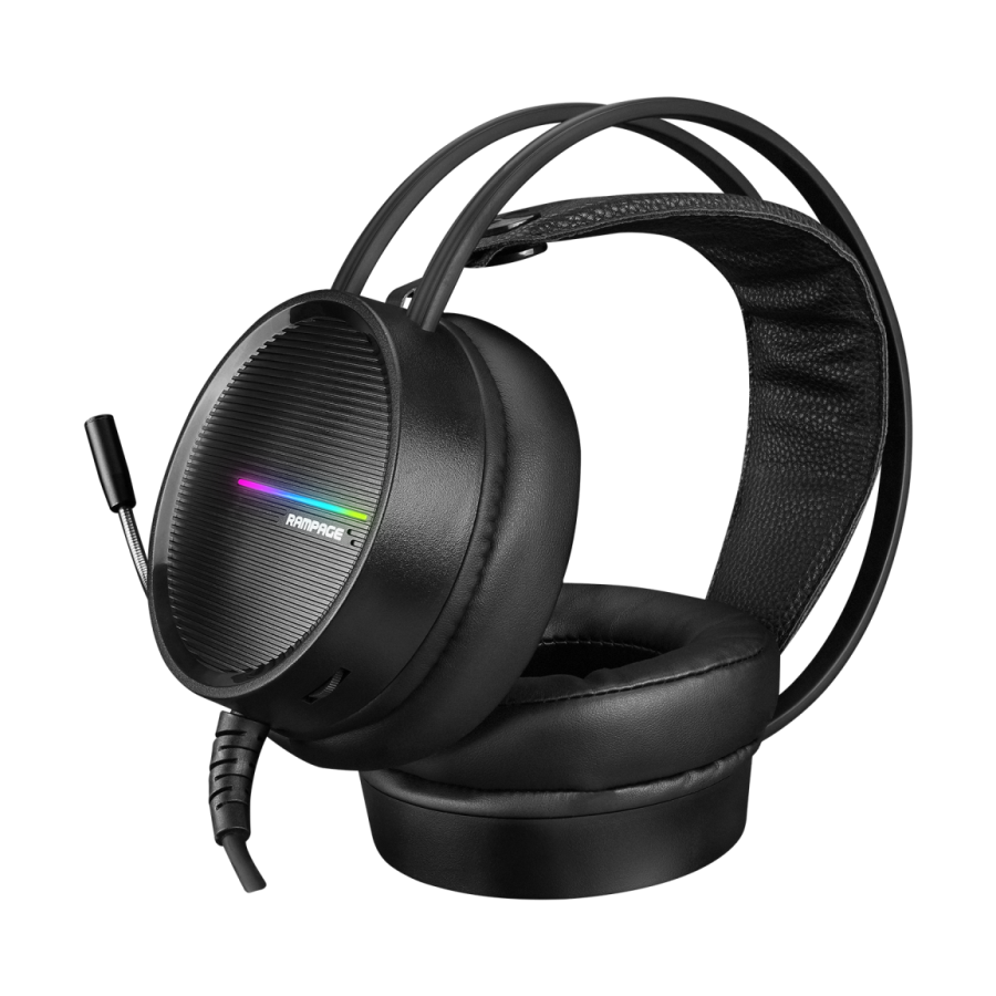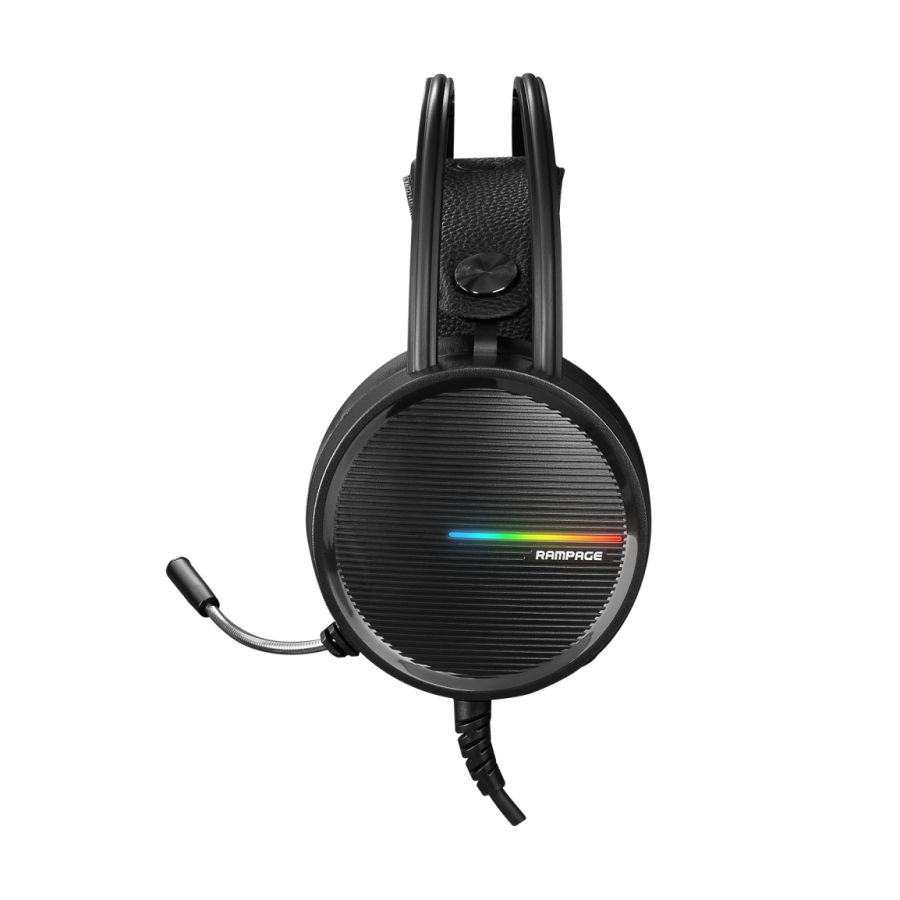 Slušalice sa mikrofonom gaming RAMPAGE RM-K3 CASHE PLUS, dugi mikrofon, USB 7.1, Rainbow LED, black, fleksibilne podesiva traka za glavu
