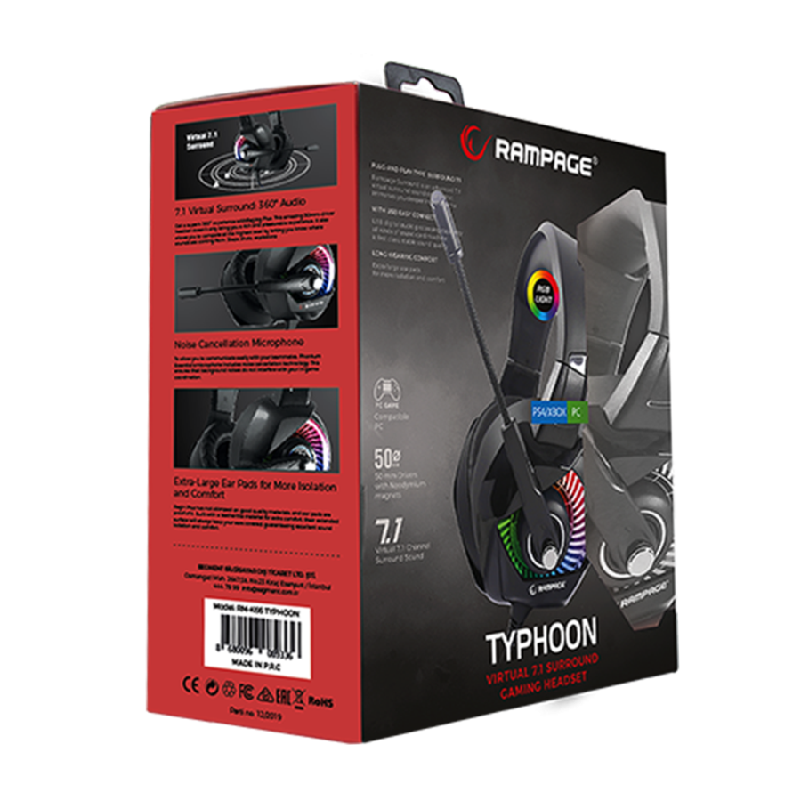 Slušalice sa mikrofonom gaming RAMPAGE RM-K66 TYPHOON black, PC/PS4, USB, 7.1, RGB LED