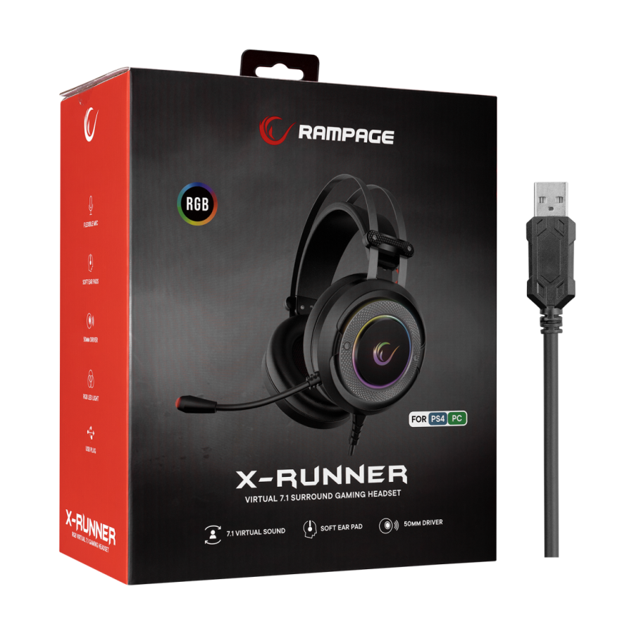 Slušalice sa mikrofonom gaming RAMPAGE G7 X-RUNNER black, PC/PS4, RGB LED, 7.1, fleksibilni mikrofon