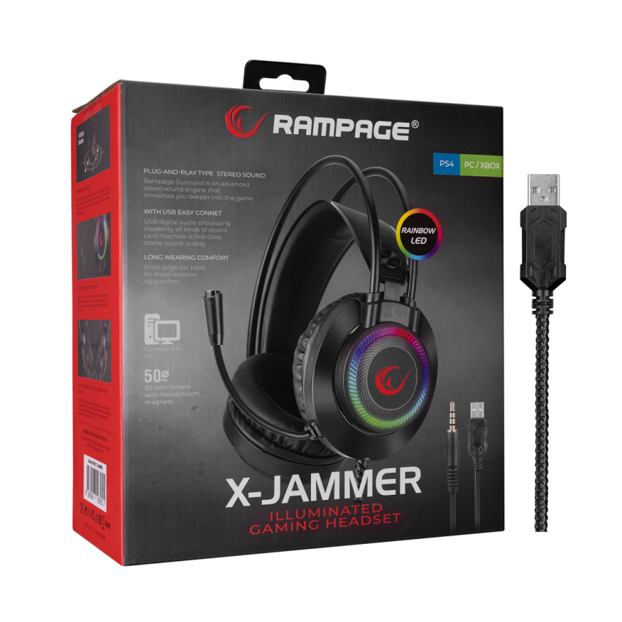 Slušalice sa mikrofonom gaming RAMPAGE RM-K27 X-JAMMER Rainbow RGB LED USB 3.5M PC - PS4-PS5-XBOX, 34516