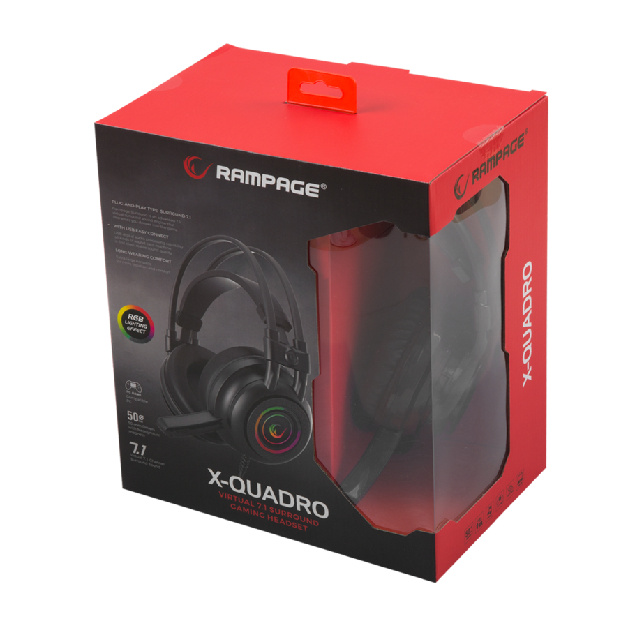 Slušalice sa mikrofonom gaming RAMPAGE RM-K2 X-QUADRO black, USB 7.1, RGB