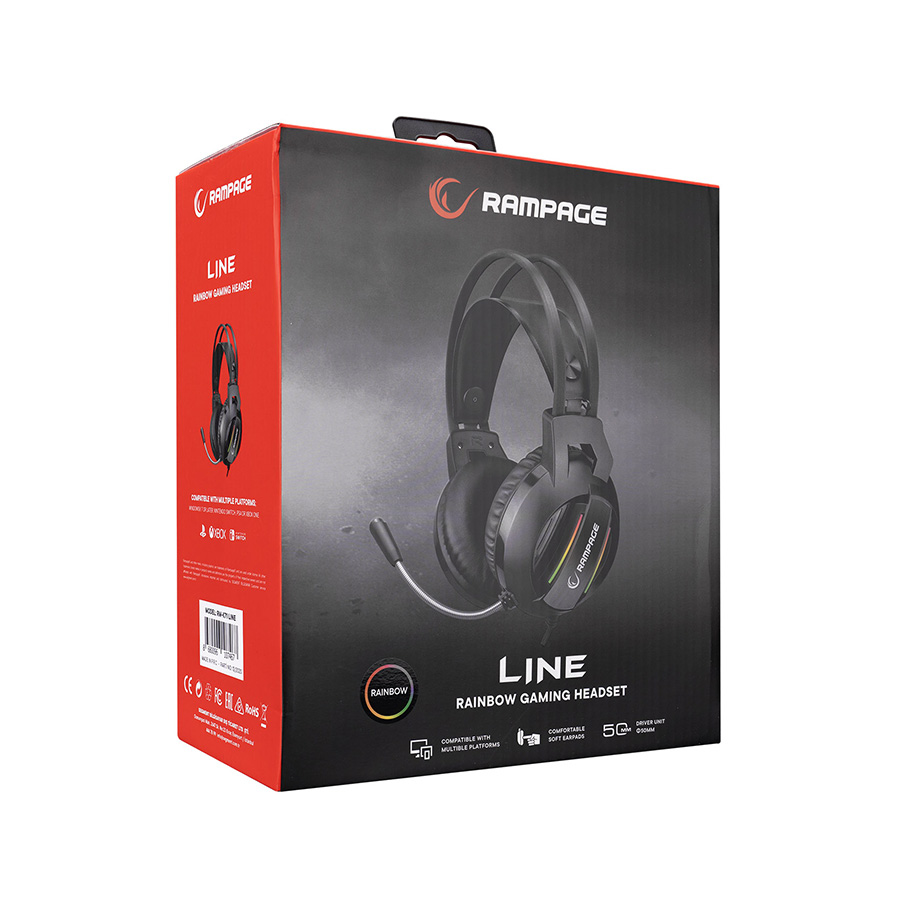 Slušalice sa mikrofonom gaming RAMPAGE RM-K71 LINE black, 3,5 mm + USB, Rainbow Iluminated, PC/PS4/XBOX