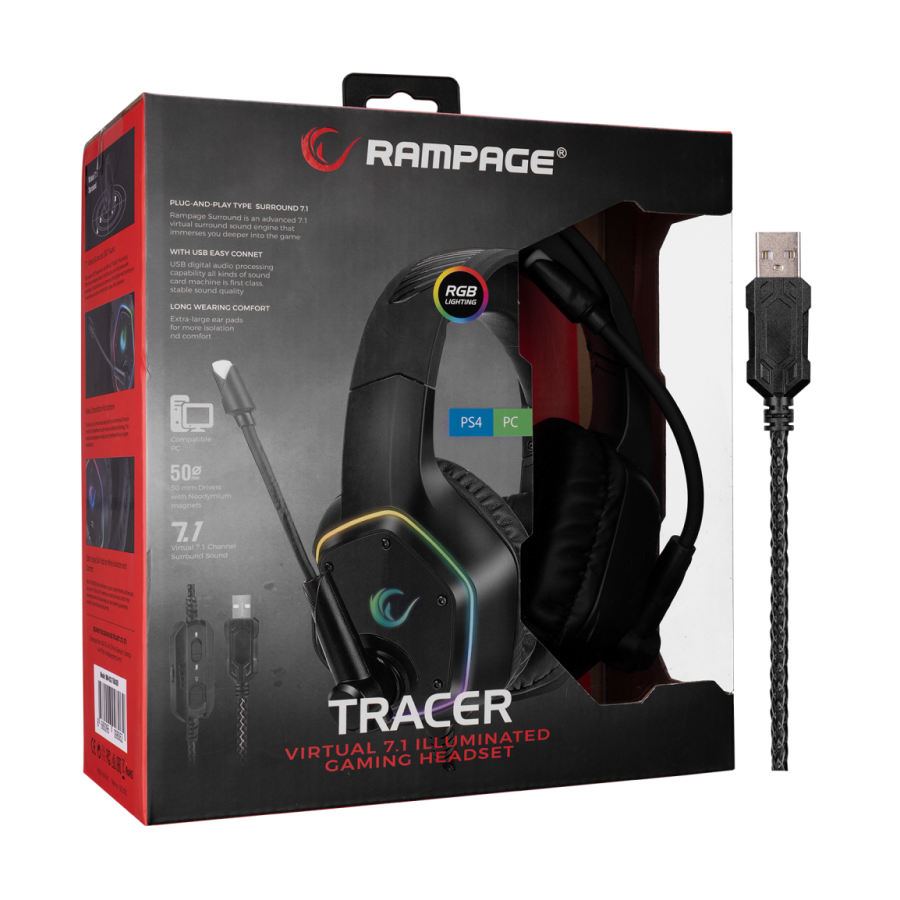 Slušalice sa mikrofonom gaming RAMPAGE RM-K33 X-TRACER, USB, 7.1 Surround, RGB PC/ PS4