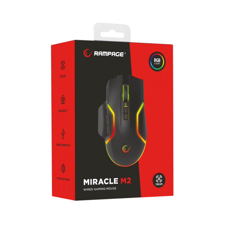 Miš gaming RAMPAGE Miracle M2, USB Black, 8 buttons, RGB 7200dpi