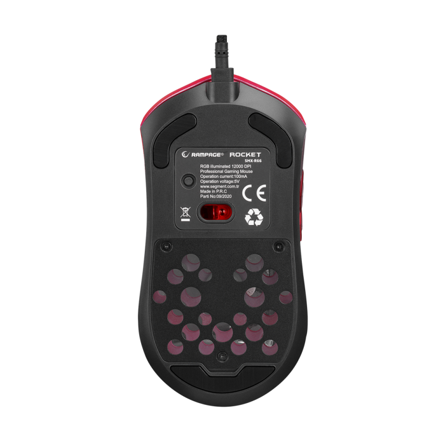 Miš gaming RAMPAGE SMX-R66 ROCKET Ultra Light Red RGB LED 12000dpi