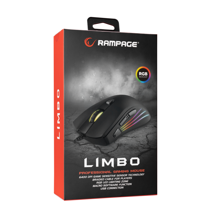 Miš gaming RAMPAGE SMX-R33 LIMBO black, macro,6400dpi, RGB LED