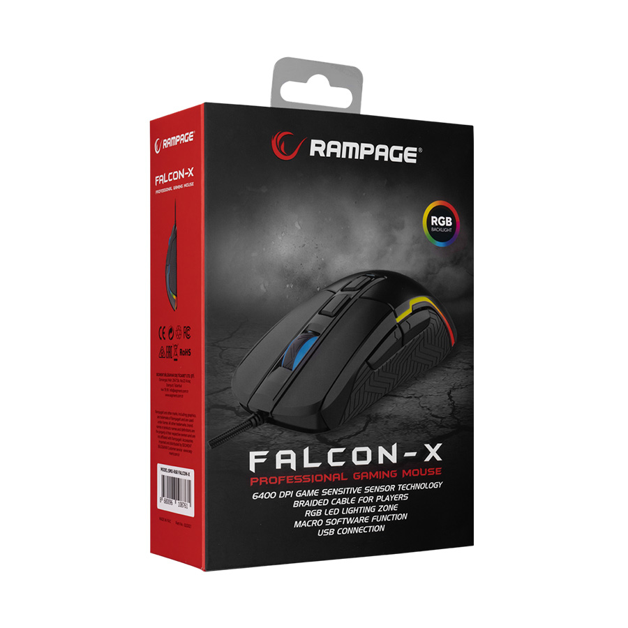 Miš gaming RAMPAGE SMX-R68 FALCON-X USB, black, 6400dpi RGB LED