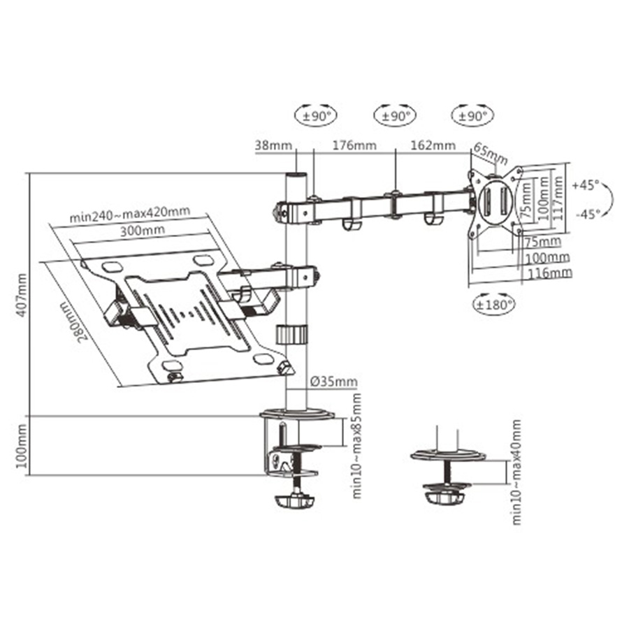 NOSAČ ZA MONITOR I LAPTOP GEMBIRD MA-DA-03, montaža na stol, monitors up to 32" and notebooks up to 15.6"