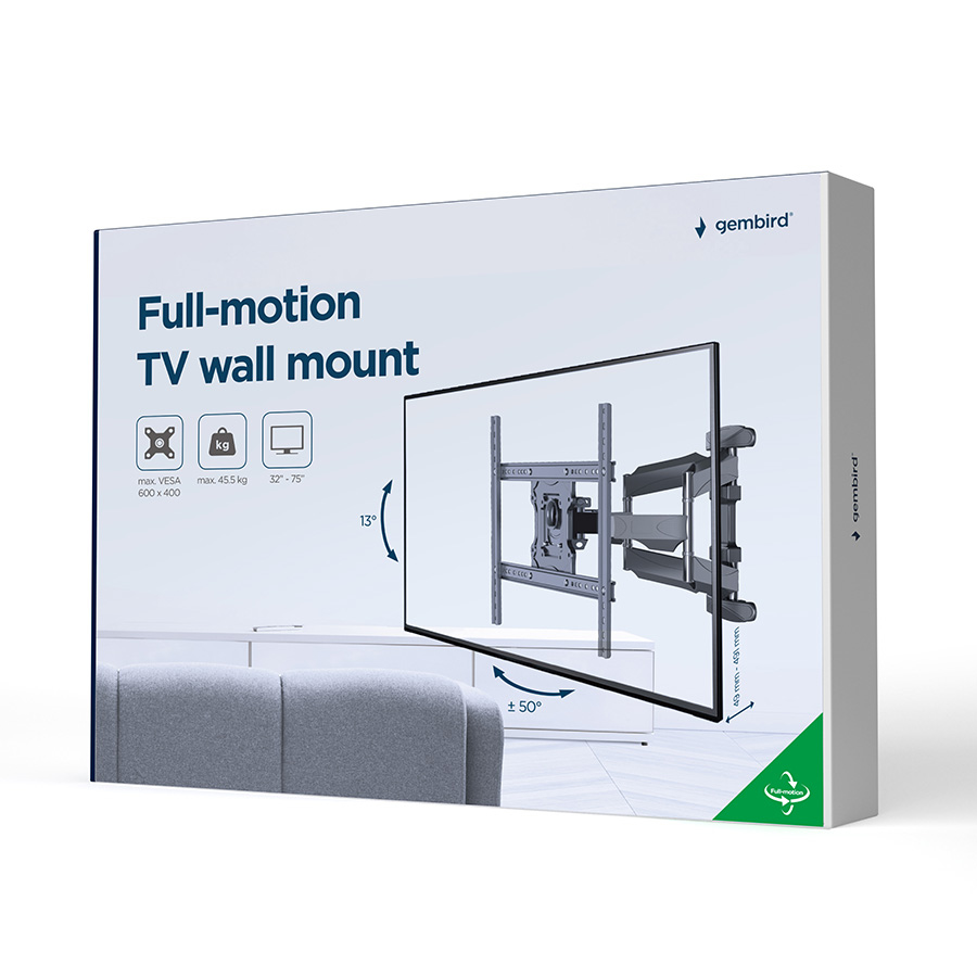 Zidni nosač GEMBIRD WM-75ST-01, 32”-75”, 45 kg, VESA: max 600 x 400 mm