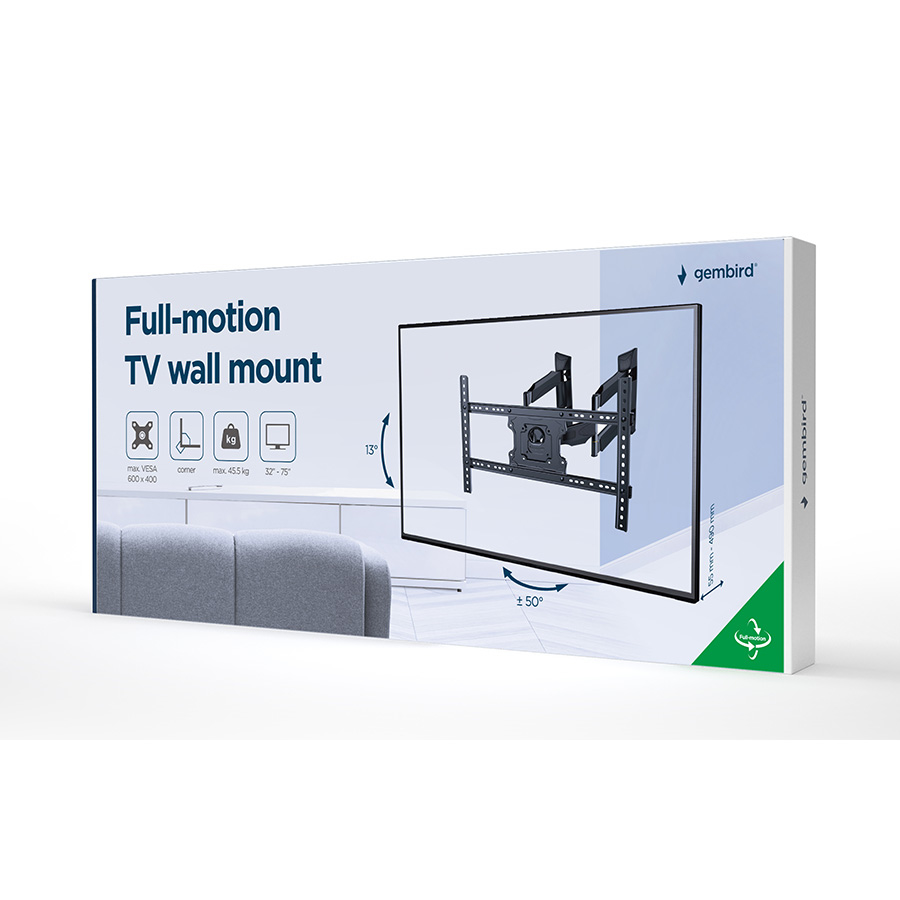 Zidni nosač GEMBIRD WM-75ST-02, 32" - 75"", 45.5 kg, VESA max. 600 mm x 400 mm, montaža u ugao zida