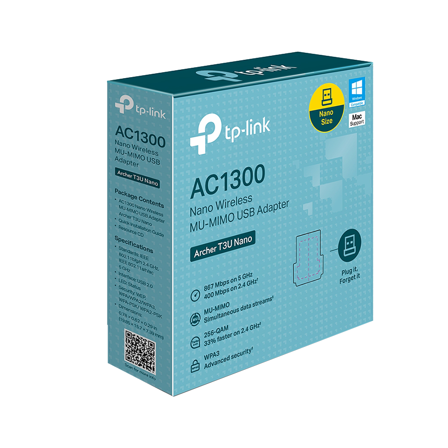 USB WLAN TP-Link Archer T3U Nano AC1300 Nano Wireless MU-MIMO USB Adapter,Nano size, 5GHz + 2.4GHz