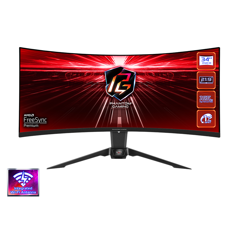 MONITOR ASROCK PG34WQ15R2B 34" CURVED GAMING WQHD 165Hz 1ms 2xHDMI DP Speaker High Swivel Tilt WiFi