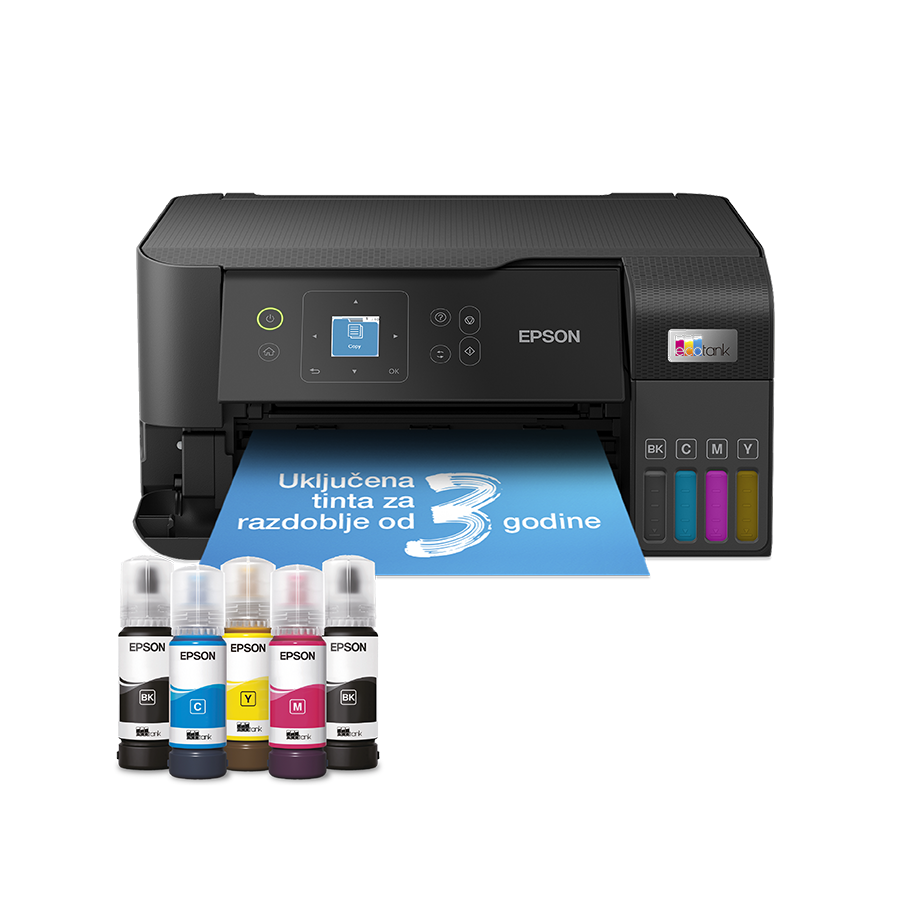 Printer EPSON EcoTank L3560 print/scan/copy/fax Rez.4.800 x 1.200 dpi. 33str/min Monokrom.20str/min Colour. ADF.Duplex.USB, LAN.WiFi. tinte br.103