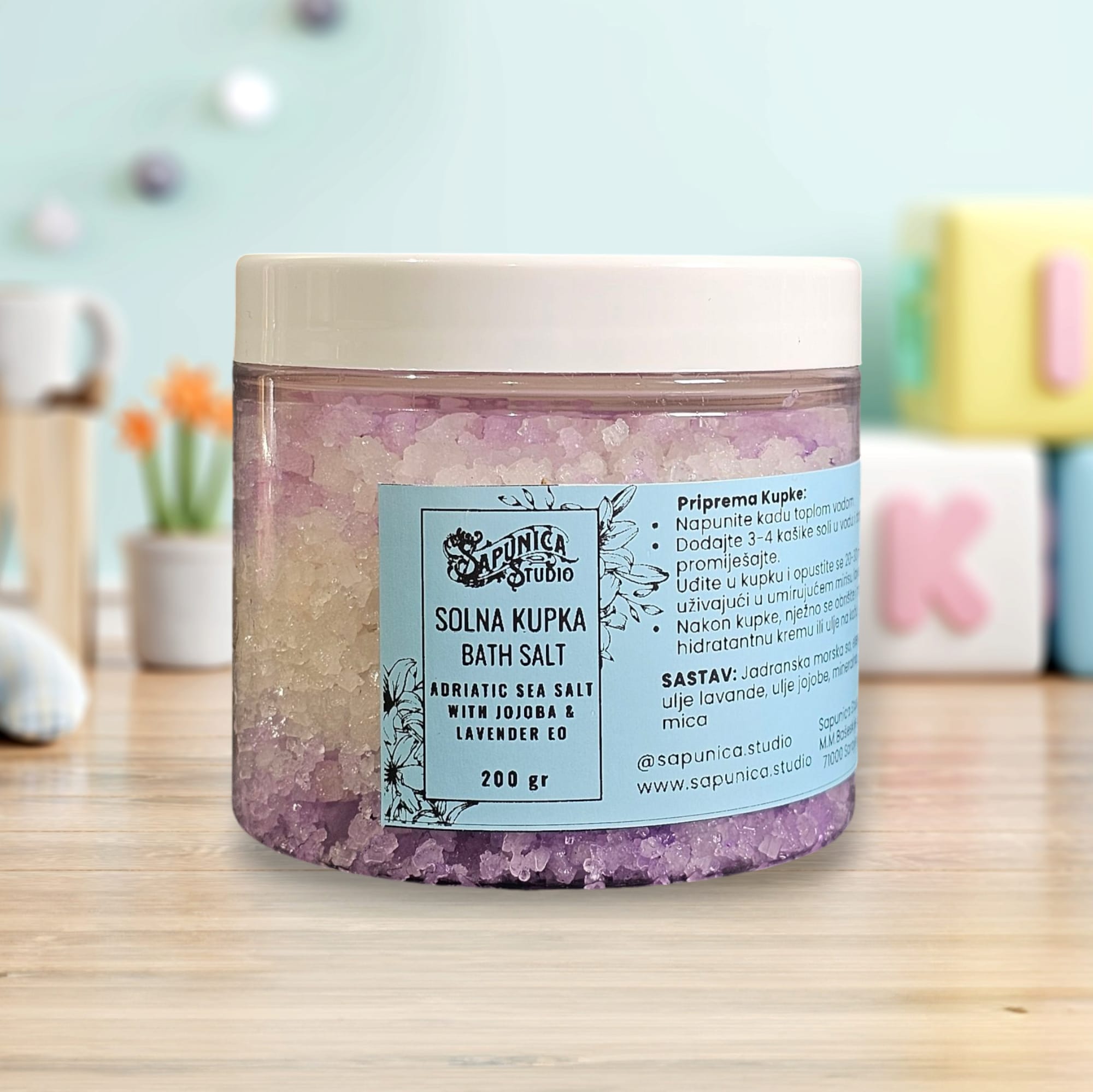 Opustite se uz miris lavande i uživajte u blagodatima prirodne njege s našom kupkom s morskom soli i lavandom.