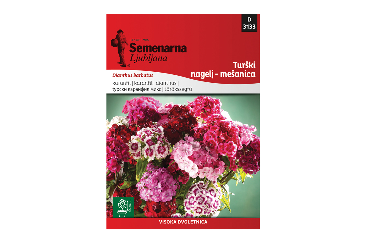 Seme klija za 7-15 dana. Turski karanfil se koristi za ukrašavanje cvetnih leja, ivičnjaka i svežih mirisnih buketa. Cvetovi su beli, ružičasti i crveni. Uspeva na suncu i delimičnoj senci Vrsta semena: Seme cveća